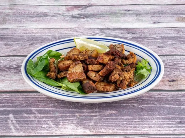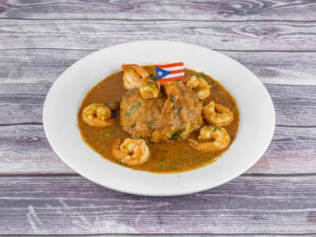 This delicious dish is made of fried green platains mashed with an olive oil, garlic butter sauce and pork cracklings.